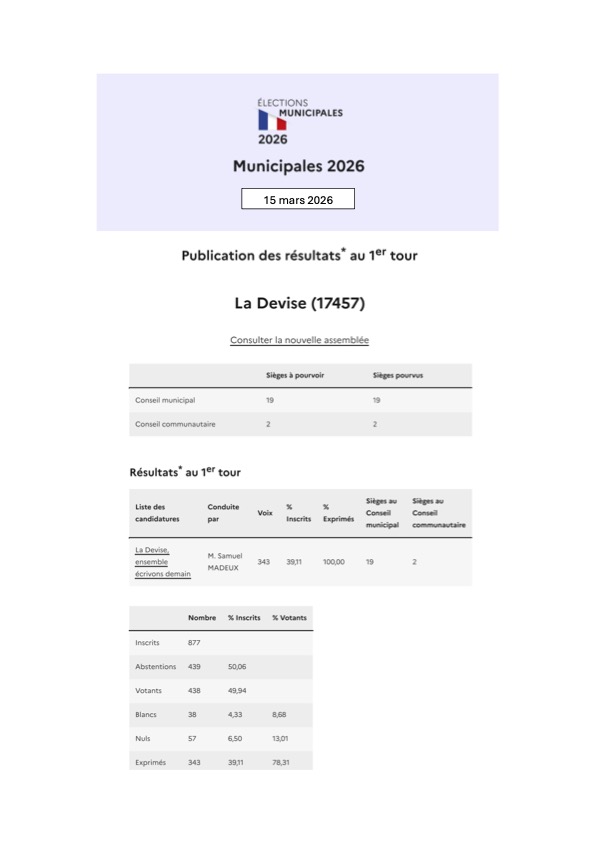 Résultats élections municipales 2026
