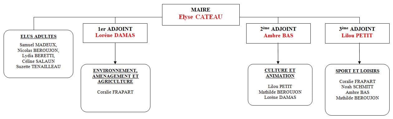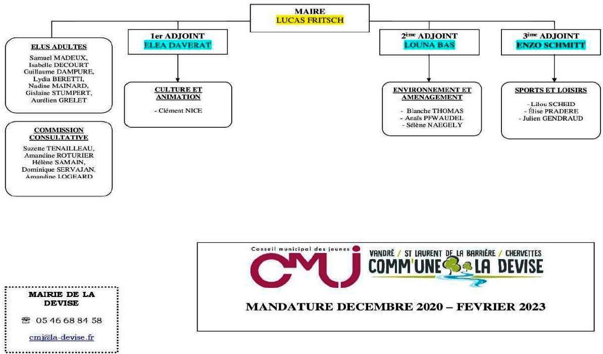 Les conseillers municipaux sont élus pour un mandat de deux ans et représentent les écoles, les associations de La devise.