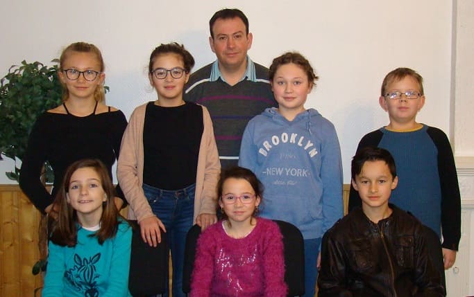 En Bas - de Gauche à Droite : Blanche THOMAS , Sélène NAEGELY , Louna BAS (2e Adjointe) , Lucas FRITSCH (Maire du CMJ) , Anaïs PFAUWADEL.